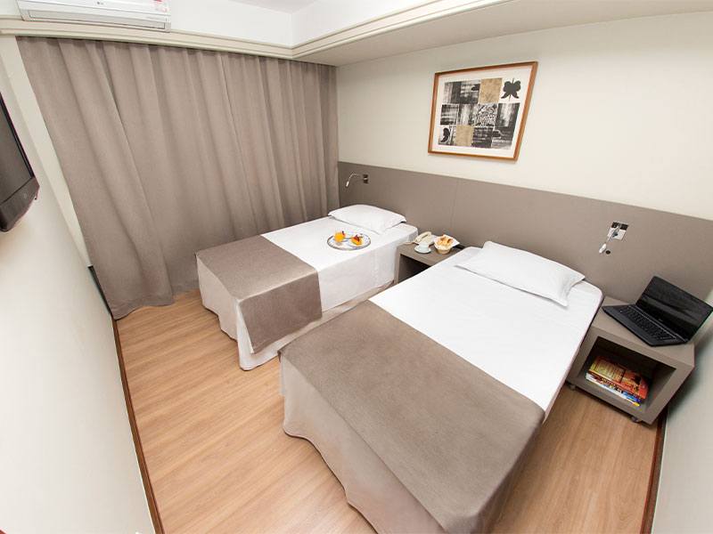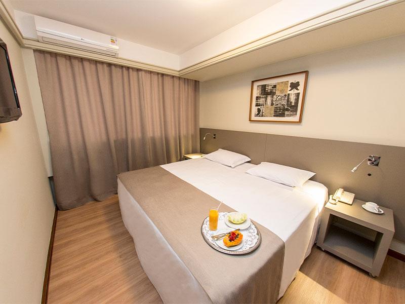 Quarto confortável indicado para pessoas que estão à viagem sozinhas ou acompanhadas, seja a lazer ou trabalho.